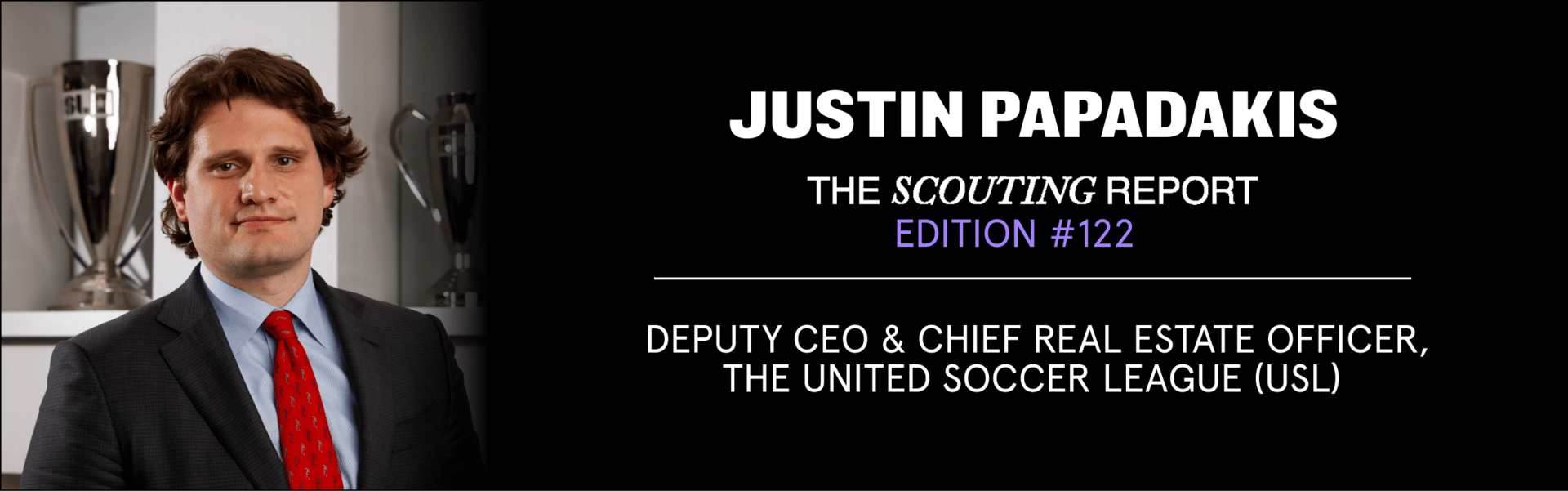 Justin Papadakis is the Deputy CEO & Chief Real Estate Officer of the United Soccer League (USL), where he leads the league’s ambitious stadium and real estate strategy across dozens of markets. A former player who came up through the Benfica Academy in Portugal before playing at Duke University, Justin shifted his focus from the pitch to the business side of the sport. After a stint in commercial real estate development and completing law school, he joined the USL full time in 2015. Since then, he has been at the forefront of shaping the league’s growth model; anchoring expansion clubs with new stadium districts, elevating fan experiences, and preparing USL for its next phase with promotion/relegation and the continued rise of women’s professional soccer.